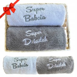 ZESTAW RĘCZNIKÓW PREZENT NA DZIEŃ BABCI I DZIADKA KOMPLET HAFT 50X100CM GRUBE